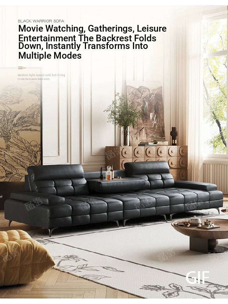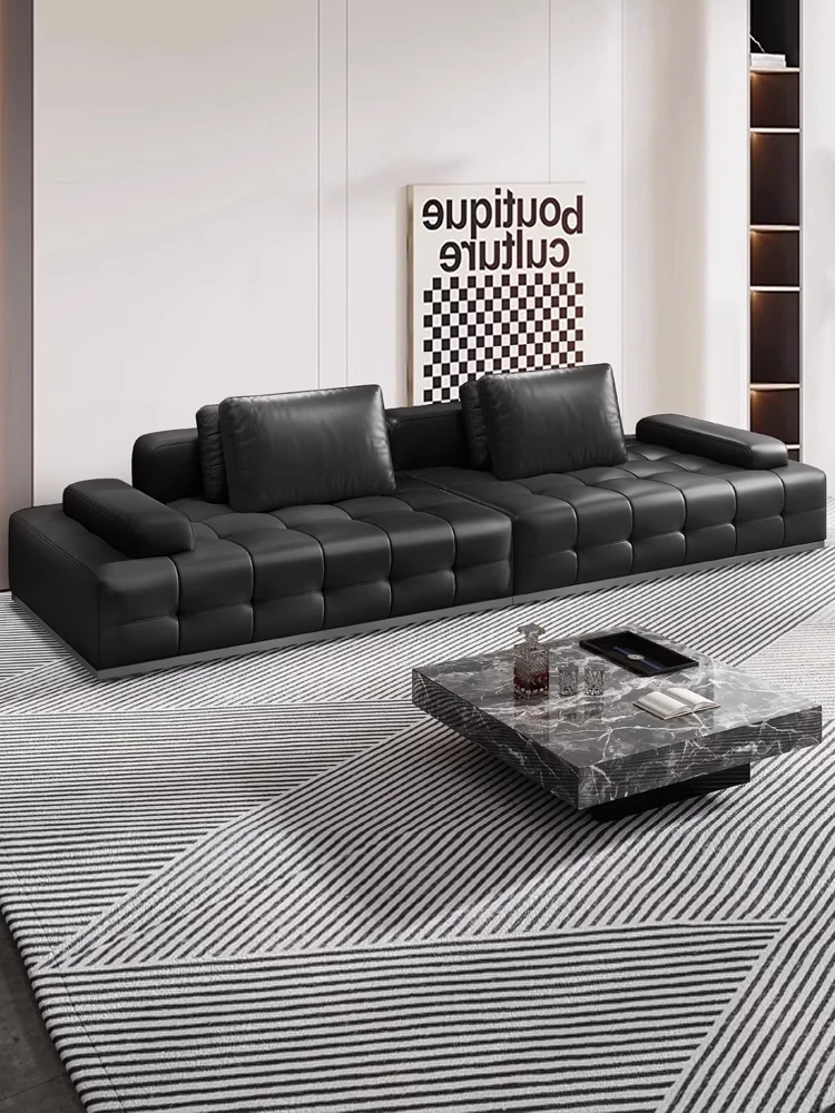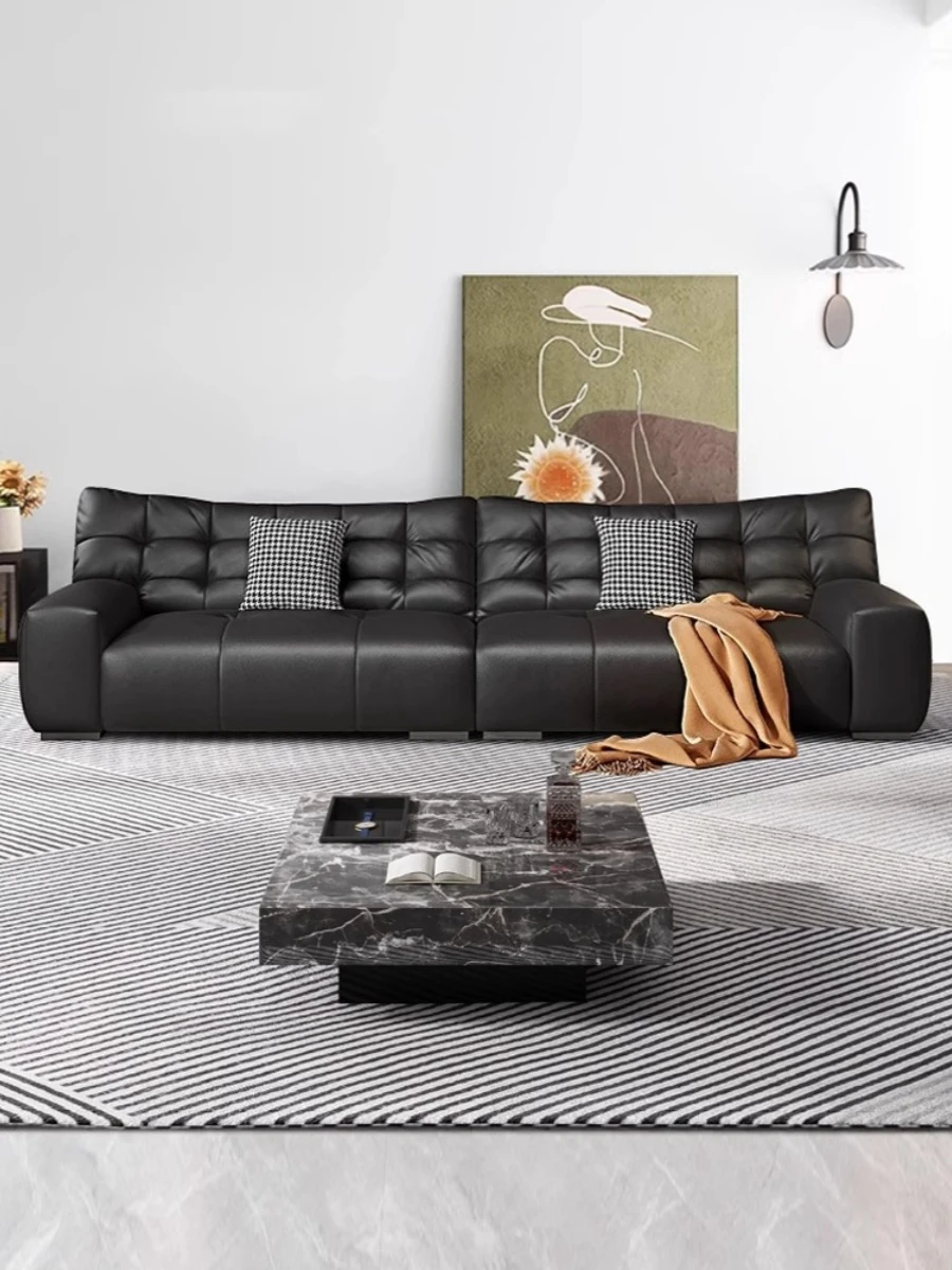 Italian Minimalist Large Black Bear Genuine Leather Sofa for Small Living Rooms - Modern Luxurious Design in Black Top-Grain Cowhide