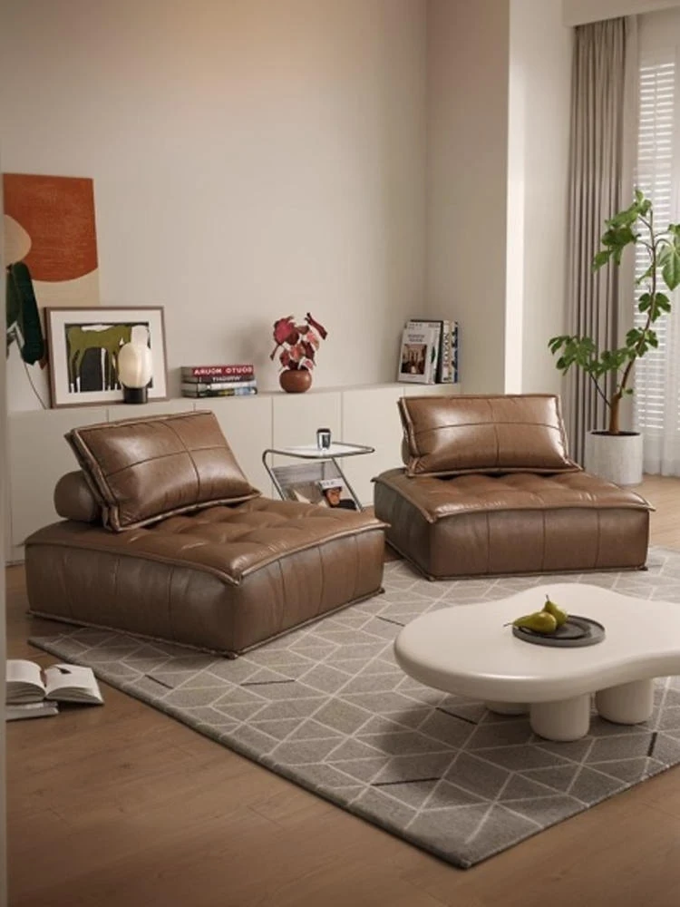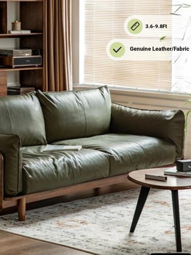 French Vintage Minimalist Modern Straight Sofa for Small Spaces – Nordic Oil Wax Genuine Leather American Industrial Style Living Room Sofa