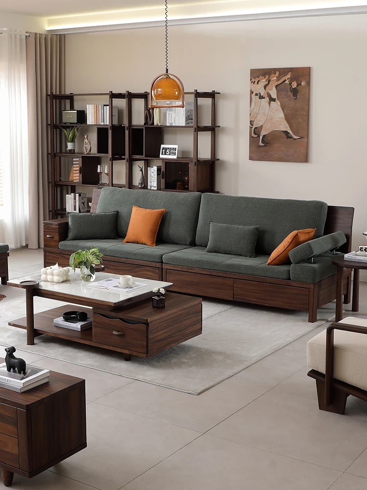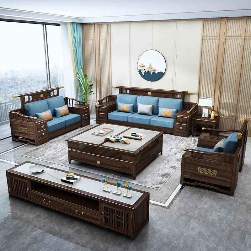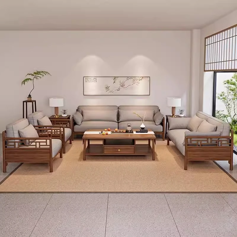 Song's Aesthetic Sofa Set - New Chinese Style Solid North American Black Walnut Living Room Sofa for Small and Large Spaces, Perfect for Villas and Modern Homes