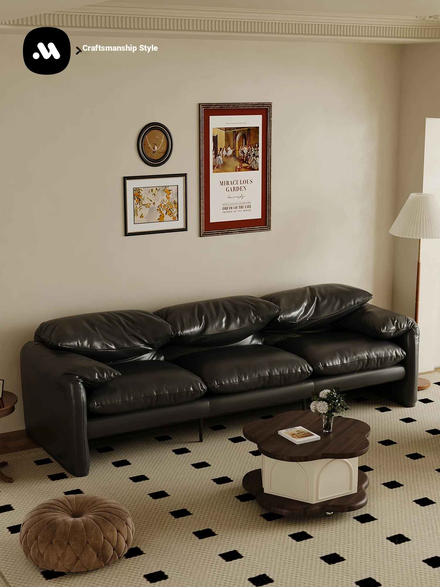 Craftsmanship Collection / Italian Minimalist Maralunga Adjustable Backrest Sofa - Vintage French Style Straight Leather Sofa