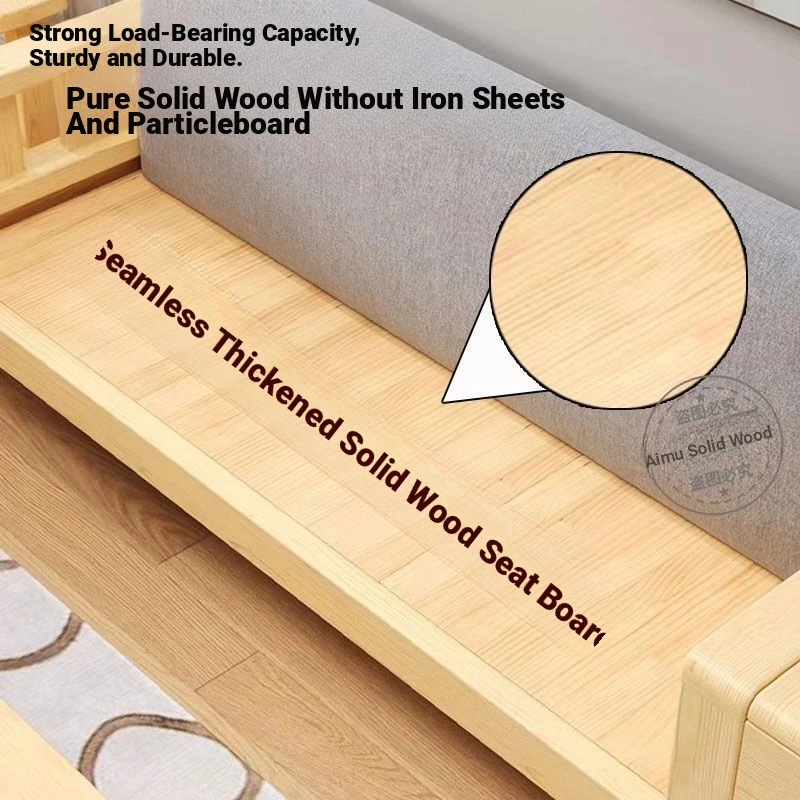 Modern Chinese Style Solid Wood Three-Seater Sofa Set with Drawers - Simple and Chic Design for Small Spaces