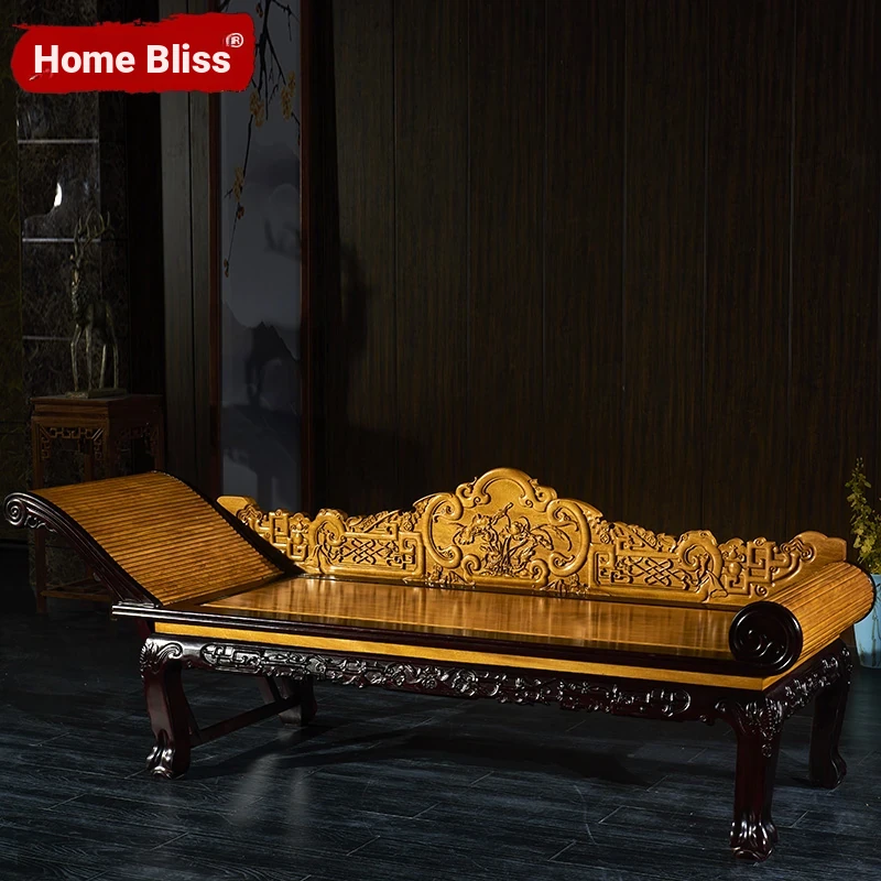 Luxury Golden Silk Nanmu Chaise Lounge - Solid Wood Red Sandalwood Bed for Living Room, Elegant Rosewood and Zitan Daybed, Perfect for Relaxation and Serenity.
