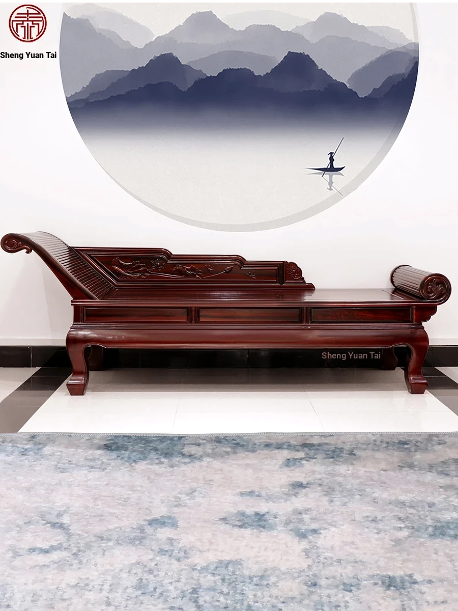 Solid Wood Rosewood Chaise Lounge - New Chinese Style, South American Rosewood, Elegant Daybed Sofa for Bedroom, Luxurious and Comfortable Design for Relaxation