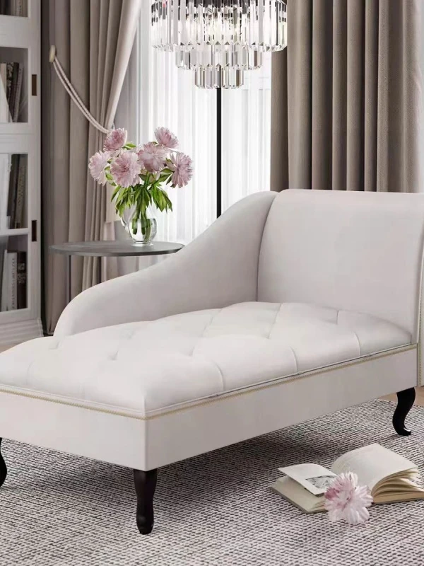 Luxurious European-Style Chaise Lounge - American Corner Sofa with Solid Wood and Genuine Leather, Ideal for Bedroom or Living Room, Elegant Daybed and Ottoman Combo