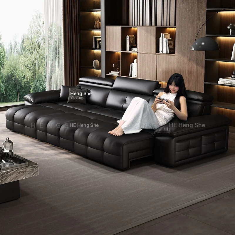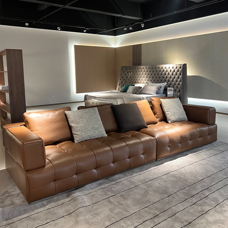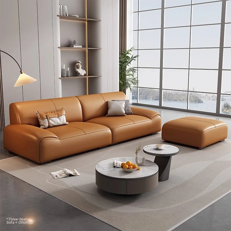 Italian Minimalist Genuine Leather Sofa - Top Grain Cowhide, Versatile 123 Combination for Small to Large Spaces, Modern and Simple Design with Latex Cushions