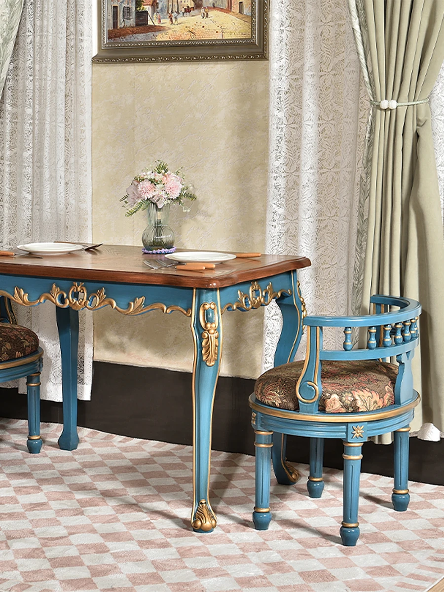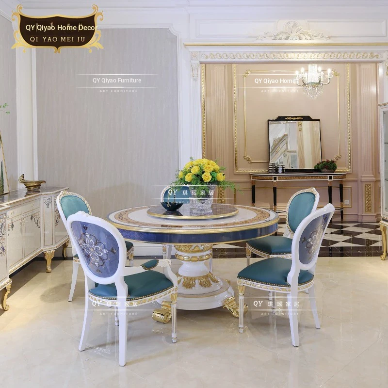 Qiyao French Luxury Round Dining Table - Elegant European Classic Design with Wood Veneer and Shell Inlay for Spacious Dining Rooms
