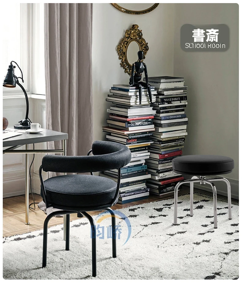 LC8スウィベルスツール シンプルでスタイリッシュなドレッサースツール 欧風レザー製円形スツール モダンなロータイプスツール
