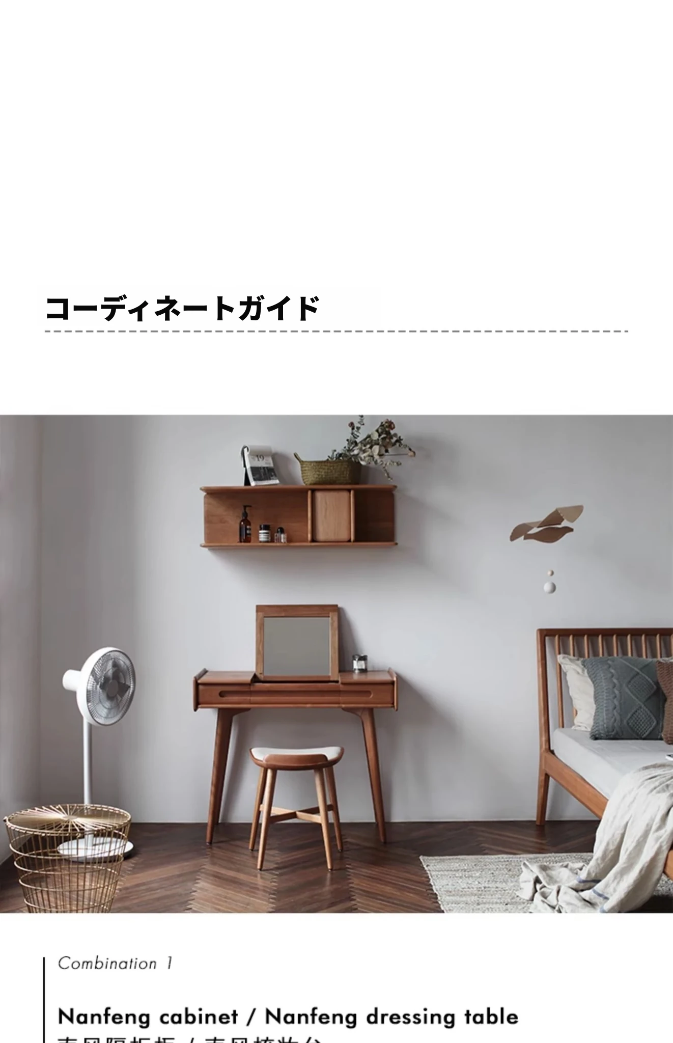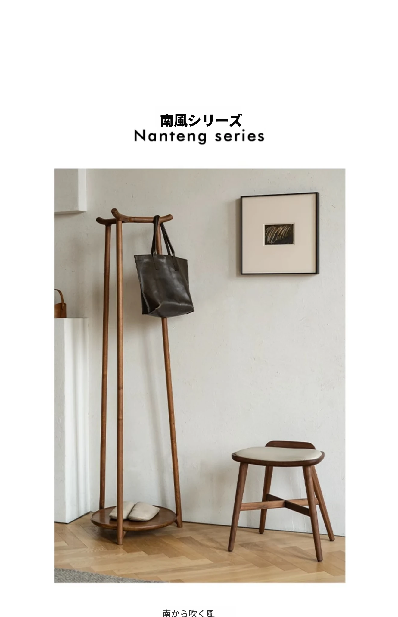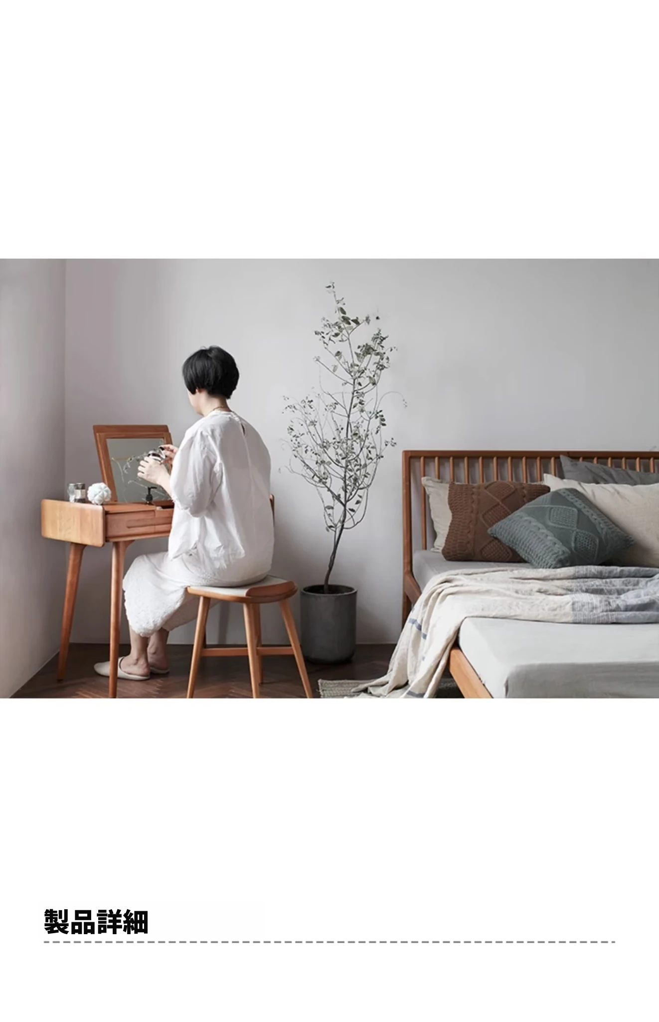 山隐の南風化粧台、北欧スタイルの家具。高級なブラックウォールナットとチェリーの無垢材使用。化粧や靴の着脱に最適な真皮製の多機能スツール。シンプルで洗練されたデザインがあなたの空間を引き立てます!