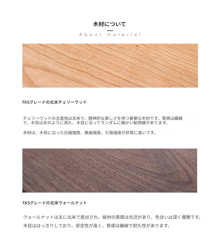 北米産チェリーの無垢材+グレーのレザー面