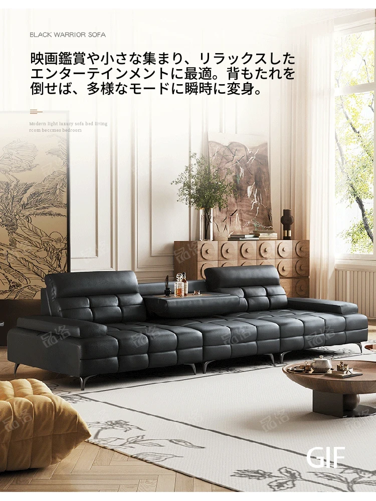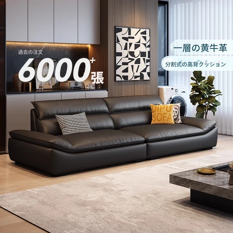 イタリアンミニマルデザインの本革ソファ - 小型リビングに最適!高級感あふれるブラックトップグレインレザー使用、モダンな軽奢スタイルで、あなたの空間を格上げします。