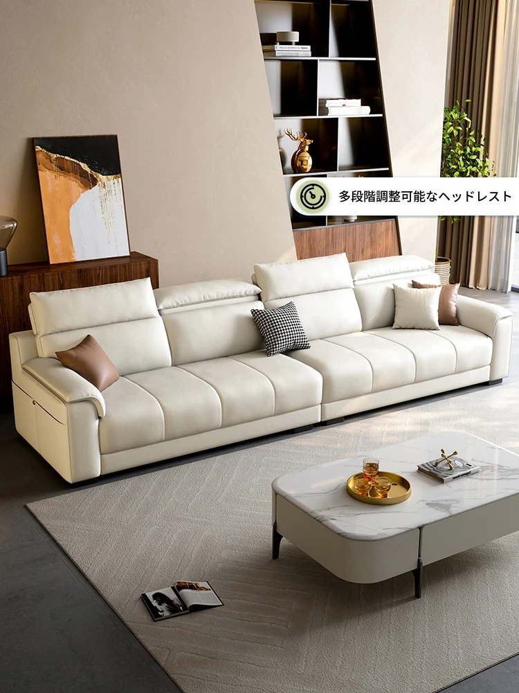 狭いスペースにぴったり!モダンでシンプルな本革製ソファ、2人掛け・3人掛け・4人掛けのコンビネーションが可能。おしゃれで快適なリビング空間を演出します。