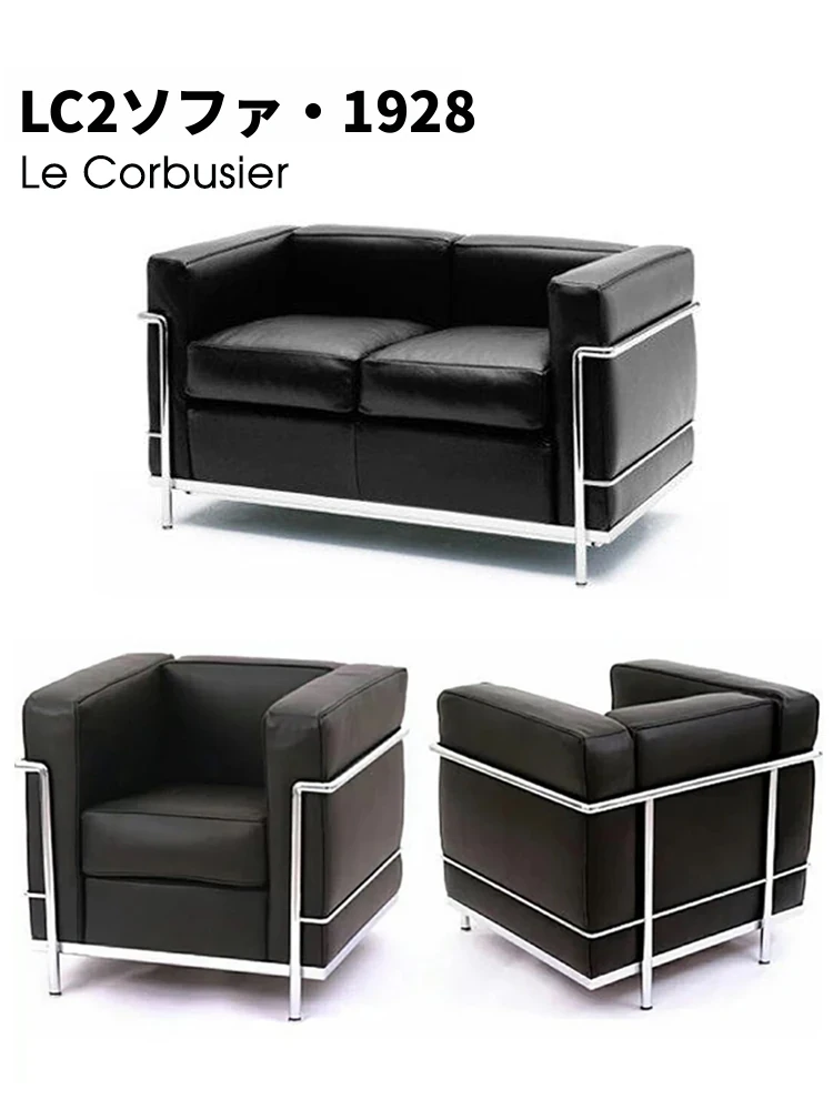 モダンなオフィスソファ、アール・デコスタイルのLC2コルビジェデザイン、北欧風・ヴィンテージスタイルの本革&ステンレススチール製ソファチェアセットで、洗練された空間を演出します。