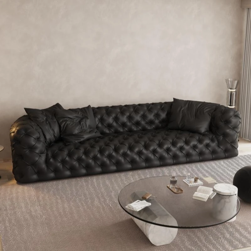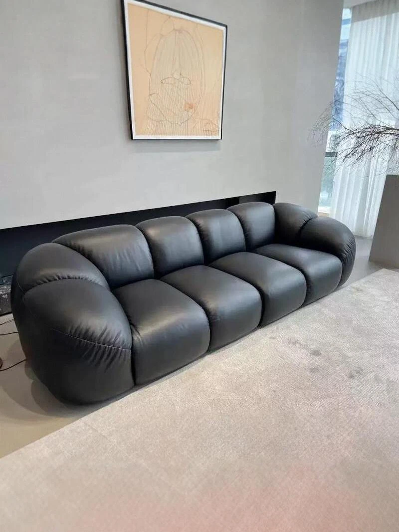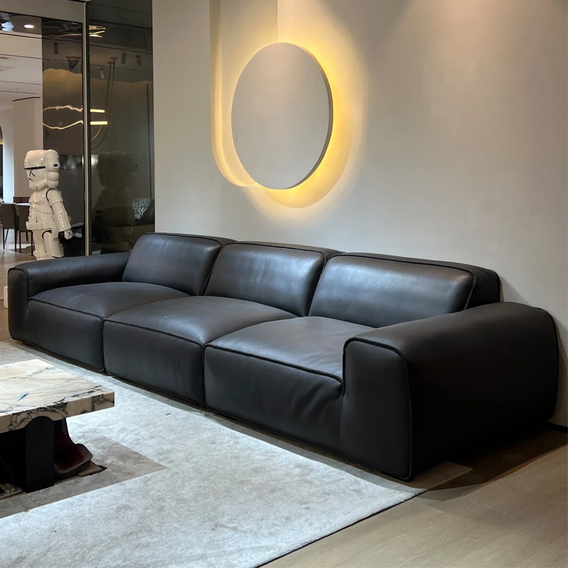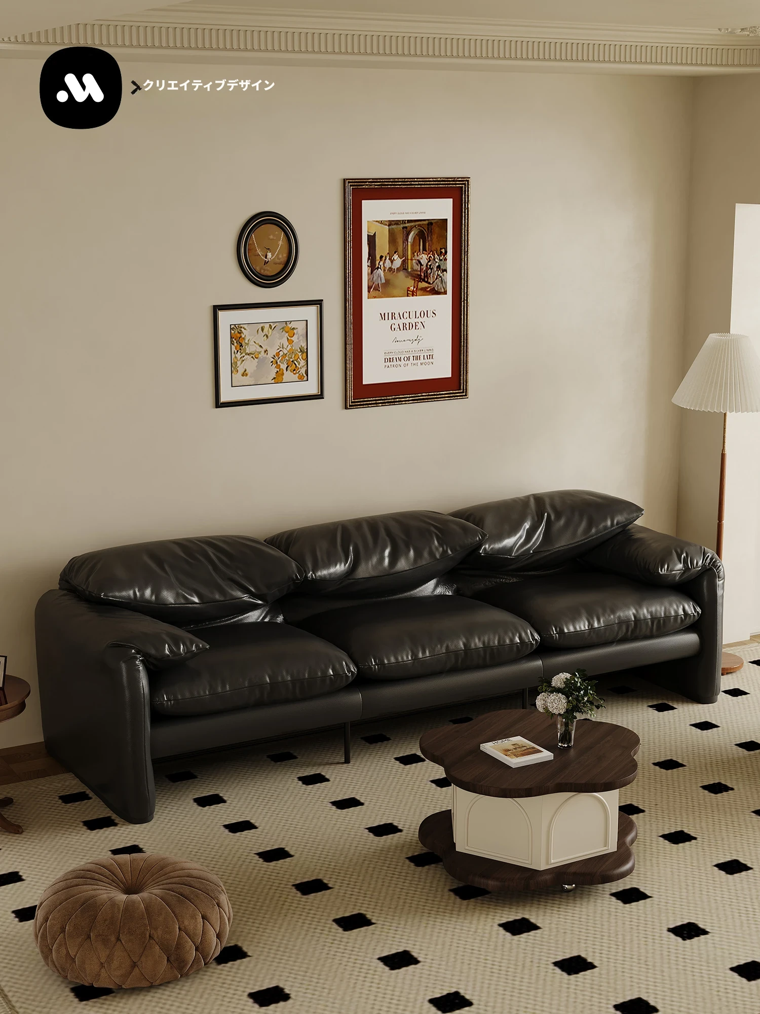パジェレ・ローレンス 本革ソファ イタリアンミニマリズム 高級ブラックプレミアムレザーソファ ラグジュアリー 2025年新作