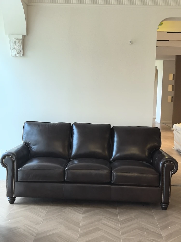 アメリカンスタイル本革ソファー - 高級なトップグレイン牛革使用、快適な3人掛けリビングソファ!おしゃれで耐久性抜群、あなたのリビングを格上げする一品です。