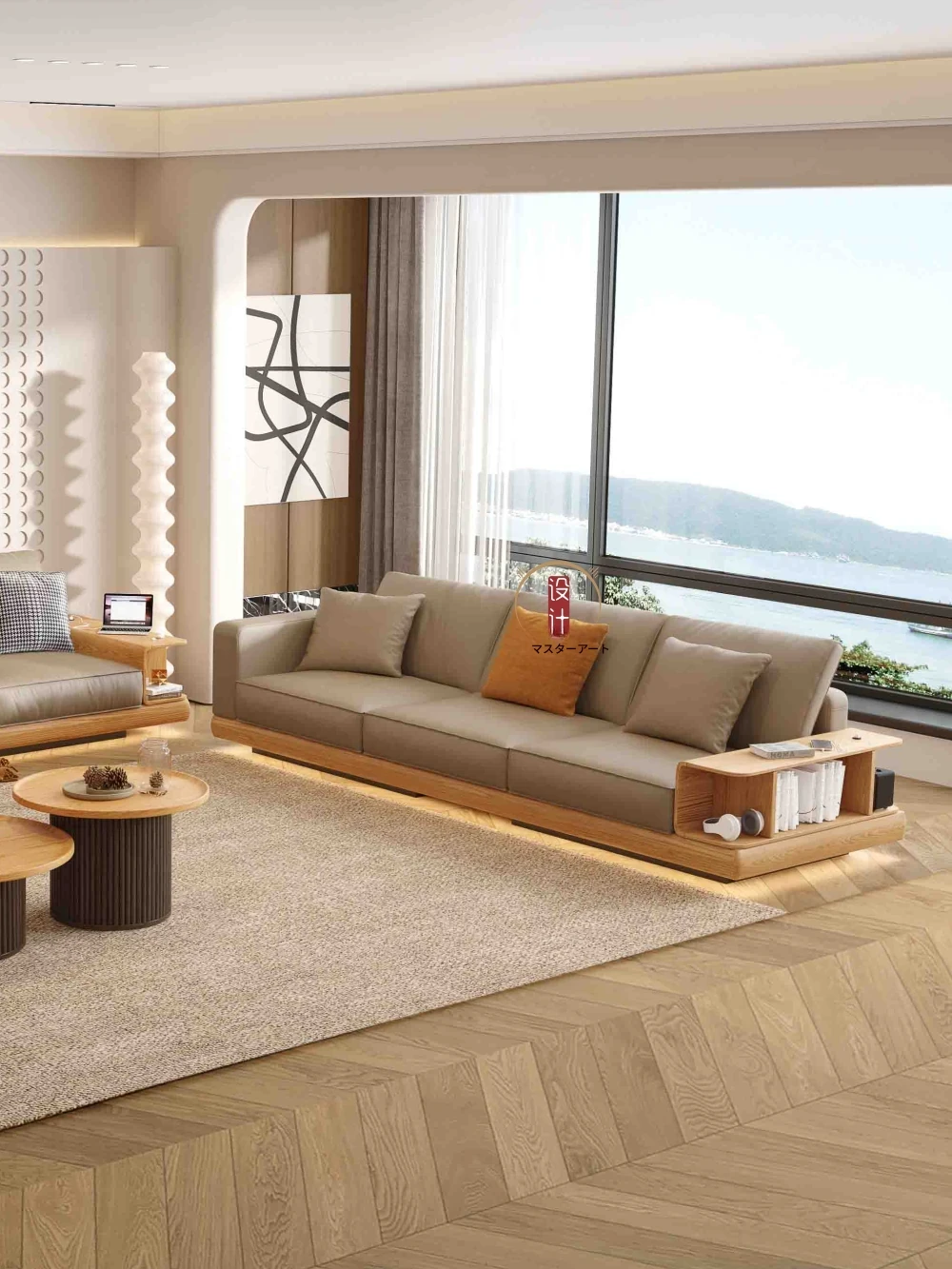 輸入品のレッドオークソファ|超ファイバー皮革&無垢材使用|アートデザインのイタリアン・ラグジュアリー|現代的な新中式スタイルで、あなたのリビングを洗練された空間に変えます!