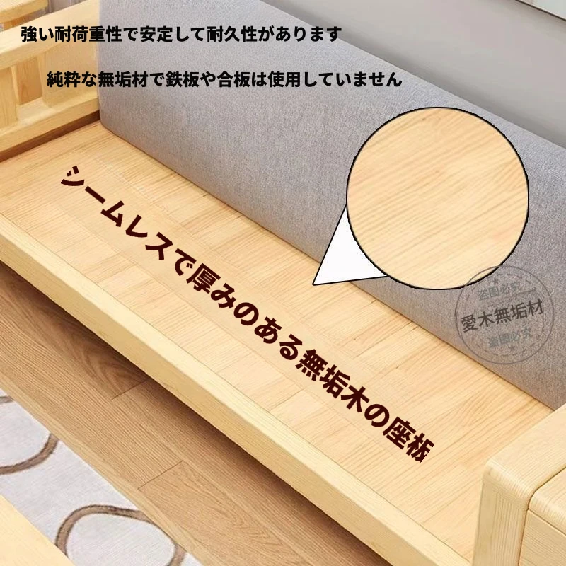 新中式スタイルの実木製三人用ソファセット - 引き出し付き、シンプルでモダンなデザイン、小型スペースにもぴったり!快適な座り心地で、リビングをスタイリッシュに演出します。