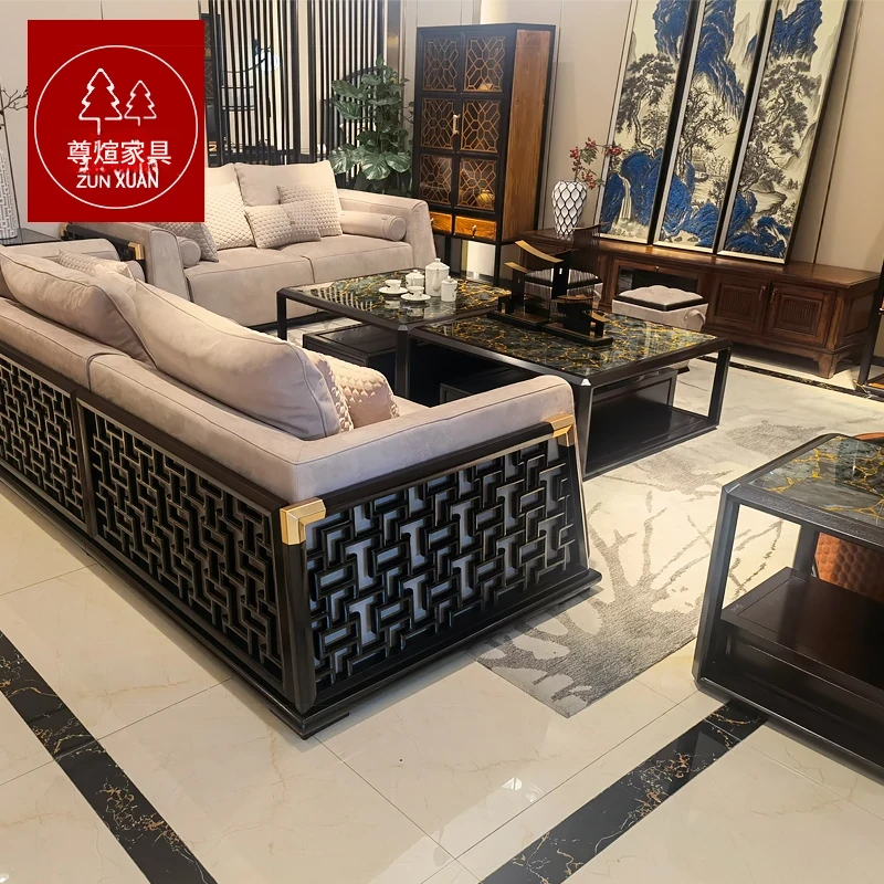 宋氏美学の新中式ソファセット - 北米産ブラックウォールナット無垢材使用、リビングルームに最適なサイズ、多様な戸建てやマンションにぴったりな高級家具!おしゃれで機能的な空間を実現します。