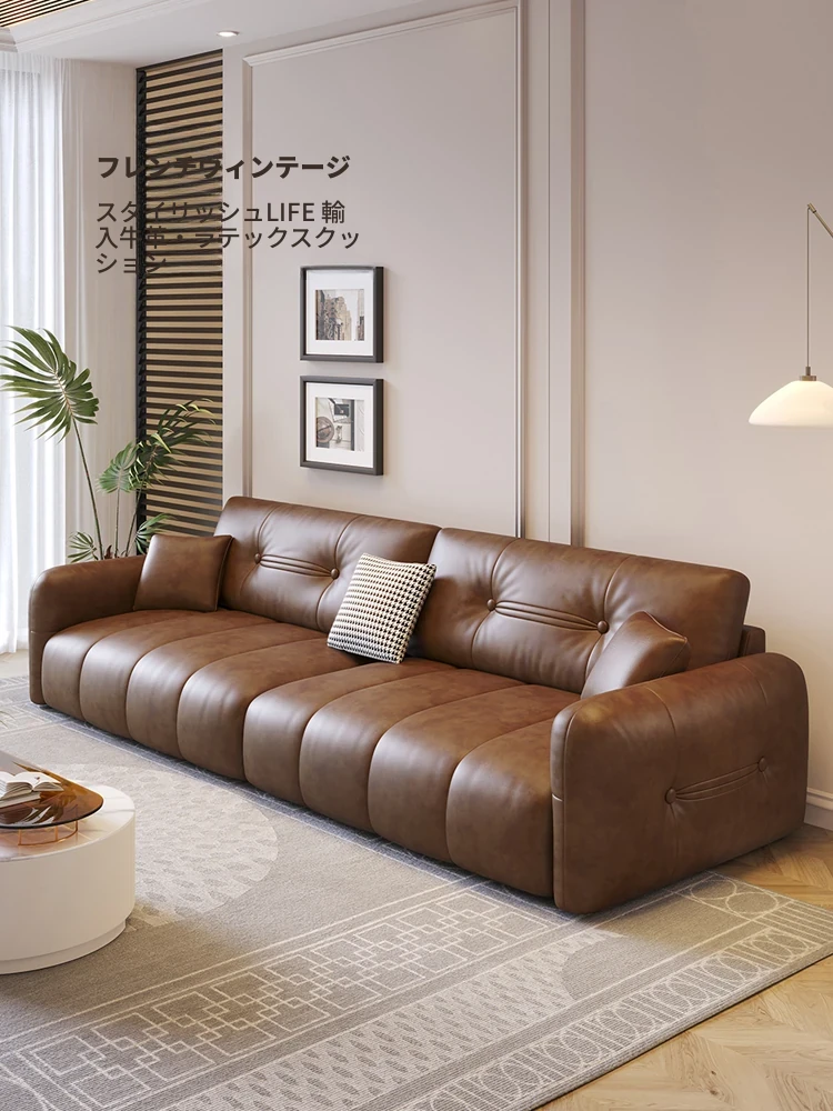 アメリカンスタイル本革ソファ 全実木使用 ヴィンテージデザイン シンプルなトラチェア ソファセット ヨーロッパ風彫刻 リビングルーム家具で、洗練された空間を演出!