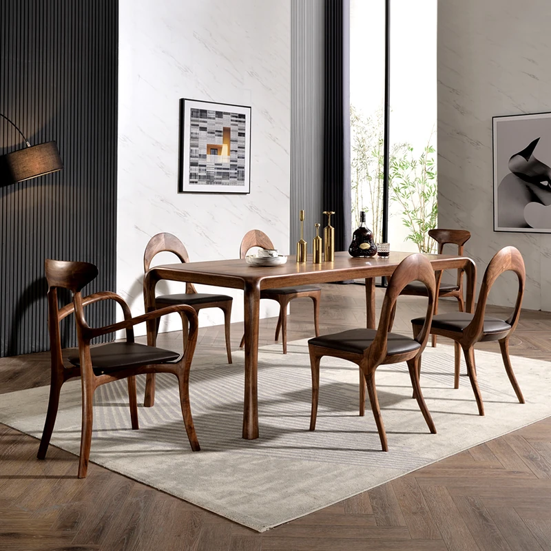 AiLvJu 高級天然木製ダイニングテーブルセット - 上質な無垢材使用、長方形デザインのダイニングテーブルとチェアの組み合わせで、スタイリッシュな食卓を演出!