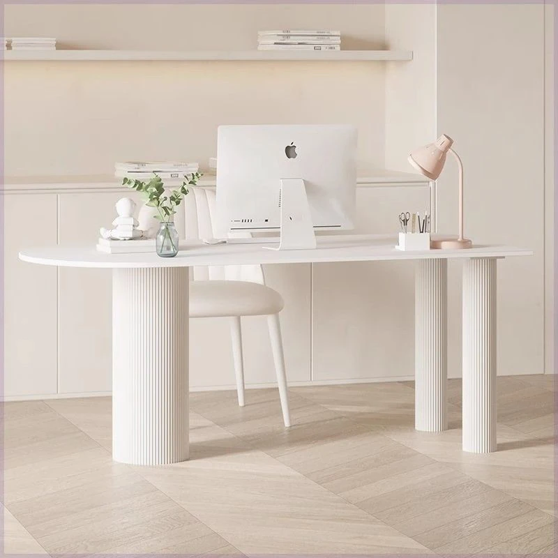 クリーム風軽奢岩板アイランドデスク|小型住宅向けシンプルモダンフレンチスタイルのパソコンオフィスデスク&チェアセット。洗練されたデザインで快適な作業空間を実現!